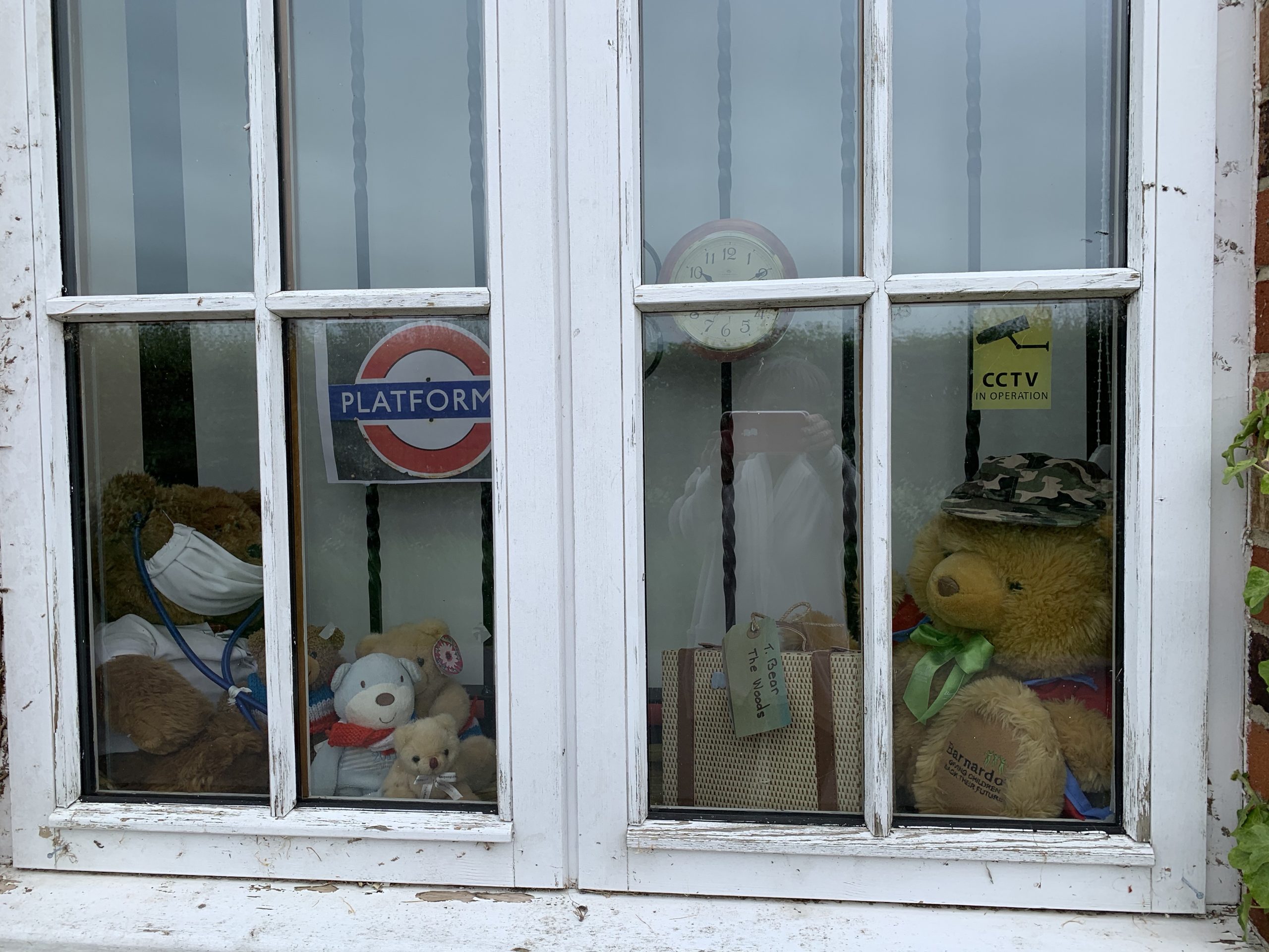 *Teddy Bears have been gracing our barn window in different guises for the past 12 weeks. This week it is the library.