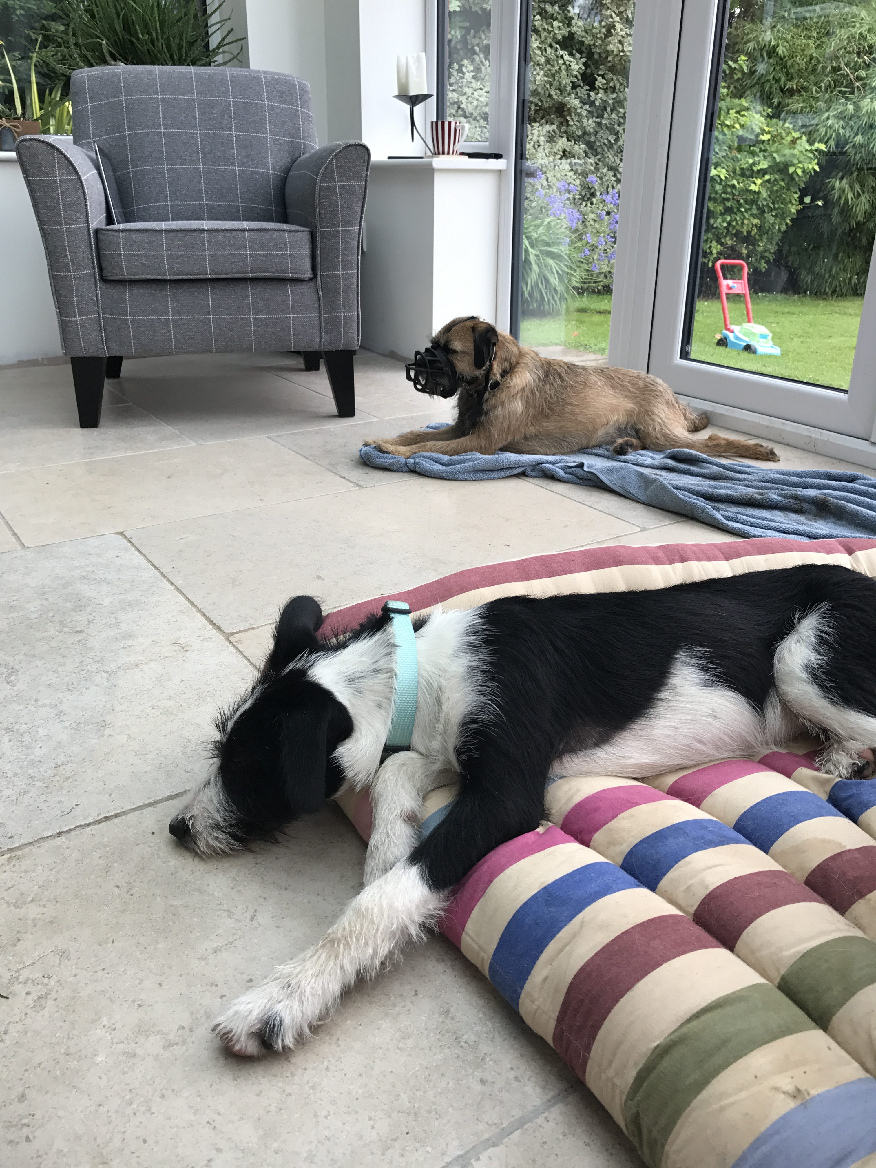 Charlie refused to be nice to the children’s new puppy from Romania, aptly named Beryl, so he had to wear a muzzle for much of the time, much to his disgust. We hope they will become friends eventually.