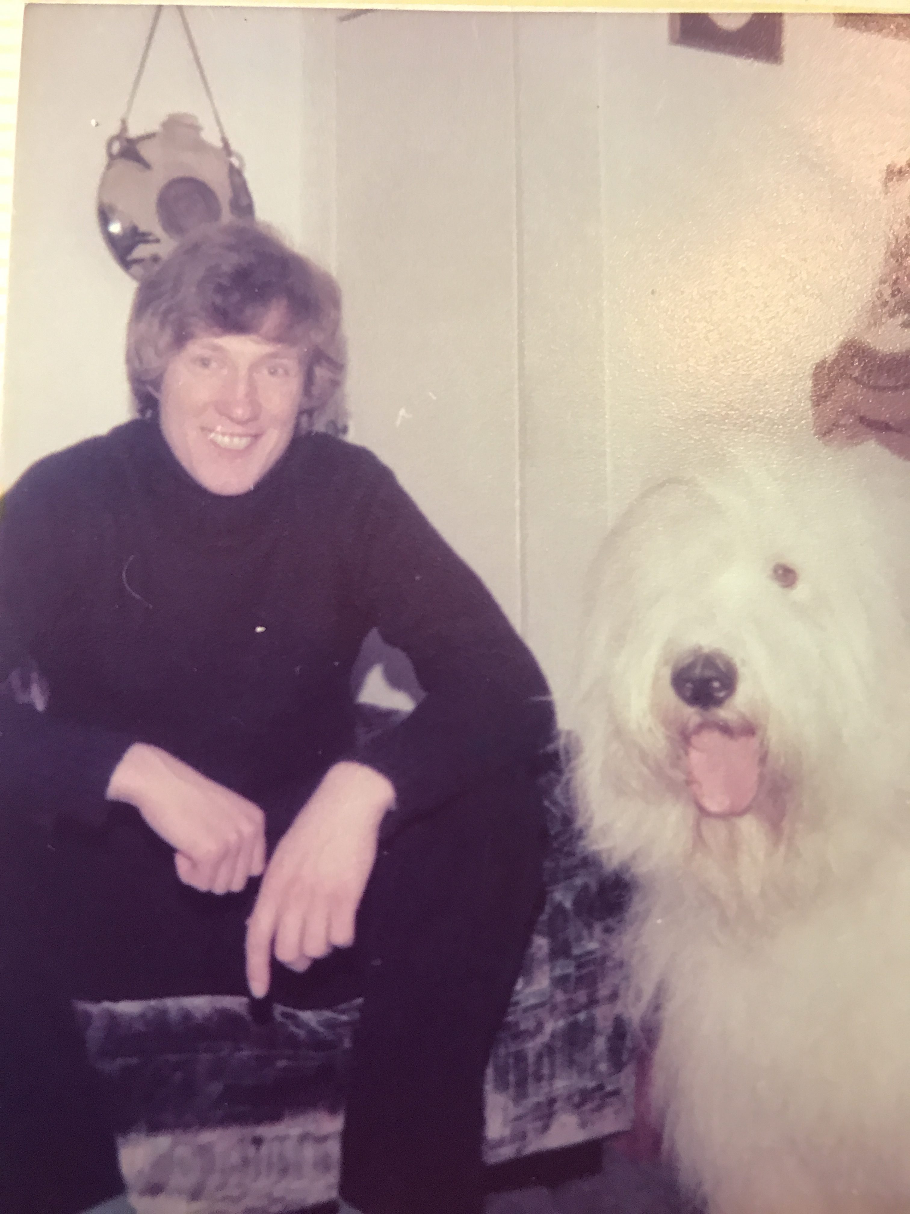 As he raised the plate to show his neighbour, the family dog – an Old English Sheepdog, a larger version of Theo, leapt at him in excitement, eager to participate in whatever it was he was doing. The plate and the breakfast took seconds to hit the deck and it was a much chastened Stuart who returned to the table, empty handed.